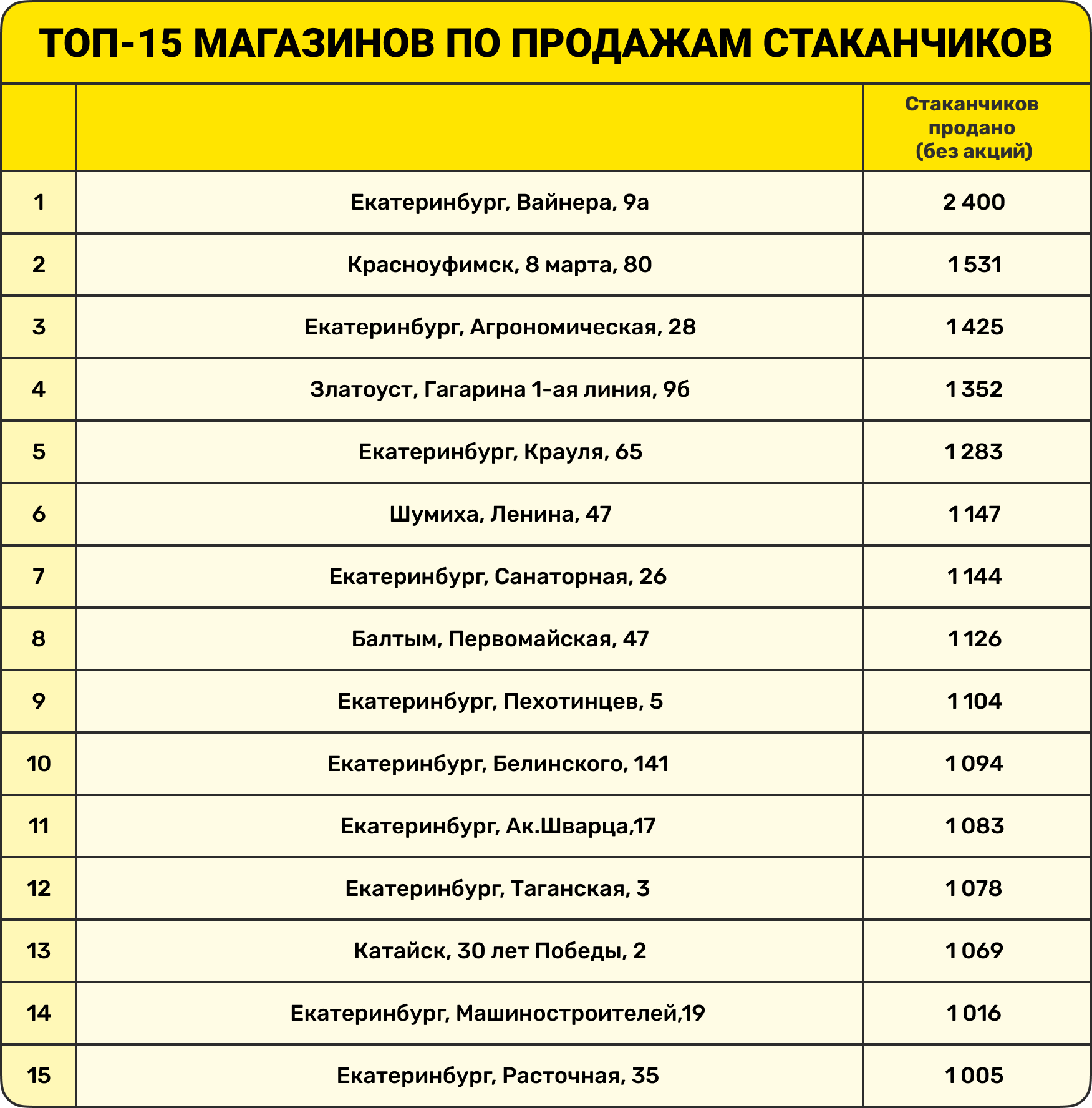 Алексей: Вау – примерно так прокатилась бирюзовая акция по сети «Пив&Ко»! Все началось с раздачи детям лимонада в наших новых стаканах 1 июня. С этого момента день ото дня акция начала набирать обороты, причем не только в Екатеринбурге. Я знаю, что в небольших городах идея гулять со стаканами по улице и пить холодные напитки – зашла еще лучше. Златоуст, Красноуфимск, Асбест и многие другие города показали отличные продажи по стаканам. Причина – там нет конкуренции. В Екатеринбурге купить напиток в красивом стакане, пусть и кофейный, – не новинка, а вполне обычная история. В маленьких городах этой культуры еще нет. По сути, мы ее и принесли этим летом, поэтому так благостно отреагировала публика. 175 000 стаканов – столько мы заказывали на лето, и 150 000 уже разошлись.