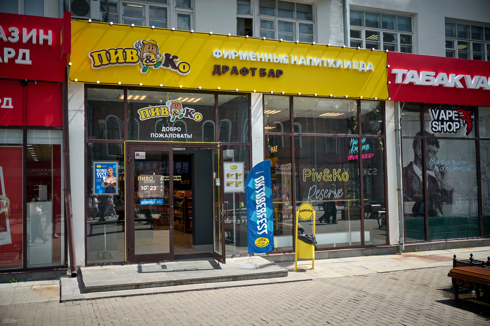 Яна: Франшизе мы уже презентовали «Октоберфест», и все материалы готовы для заказа. Со стороны маркетинга могу сказать, что глубокий синий шикарно смотрится на контрасте с желтым – основным цветом сети. Магазины получаются очень яркими, притягивающими к себе внимание. Уверяю, что смена цвета – значимый элемент в обновлении магазина. Всего несколько элементов в интерьере точки и у покупателя сразу: «Вау! Магазин обновили». При этом в части расходов получается незначительная сумма, которая абсолютно точно окупается заинтересованностью клиентов.